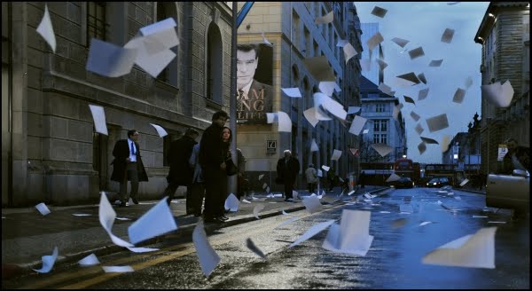 While he was under arrest, Laure sends an e-mail from Nicolas' computer to her husband telling him that she's been kidnapped and demands a ten million dollar ransom for her return. He comes home and discovers this, and realizes that he's essentially fucked and has no choice but to go along with her plan. He meets her on a bridge overlooking the Parisian skyline, and she uses her sexuality in an attempt to lure him into going along with her plan. She takes him to a bar, and in this sequence De Palma fully explores the themes of emasculation and voyeurism, depicting sex itself as an expression of gender power dynamics, hostility, and attraction. Once again, Laure uses the masculine desire to protect against Nicolas, putting herself in a position where a man will be forceful with her so Nicolas can step in to save her. He beats up the would-be rapist, and then proceeds to have aggressive sex with Laure - she thinks he's fallen into her trap, and he thinks she's fallen into his, as he records her saying that the whole kidnapping plot was her idea.